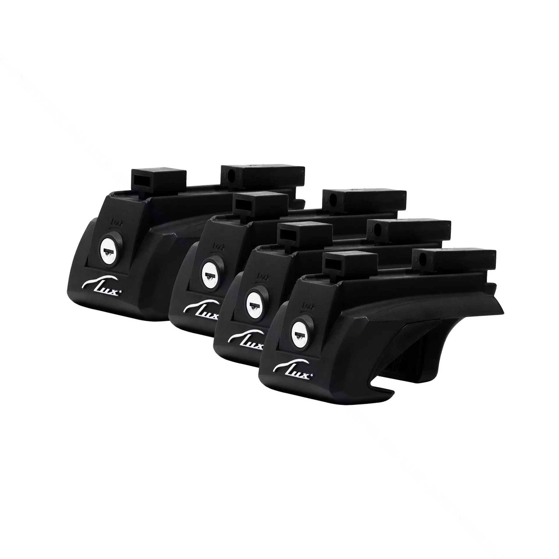 Автобагажник Lux крепится на рейлинги автомобиля с помощью специальных опор. Опоры багажной системы выполнены из прочного атмосферостойкого пластика. Крепежные элементы жестко фиксируют багажник в необходимом положении. Дуги-поперечины LUX серии Аэро-Трэвел 82 имеют усиленный алюминиевый профиль крыловидного сечения, шириной 82 мм, заметно уменьшающий шум во время движения. Также, для снижения шума, с торцов профиль закрыт пластиковыми заглушками, а пазы крепления опор закрыты резиновыми уплотнителями. Сверху профиля имеется Т-паз (евро слот) шириной 11 мм для крепления дополнительных аксессуаров, по умолчанию закрытый резиновым уплотнителем. Такой уплотнитель удобен тем, что не позволяет перевозимому грузу скользить по поперечине. На такой автомобильный багажник можно установить любое дополнительное оборудование или аксессуары как иностранных, так и российских производителей багажников (боксы на крышу, крепления для перевозки велосипедов, лыж, фиксаторы груза, багажные корзины и многое другое).