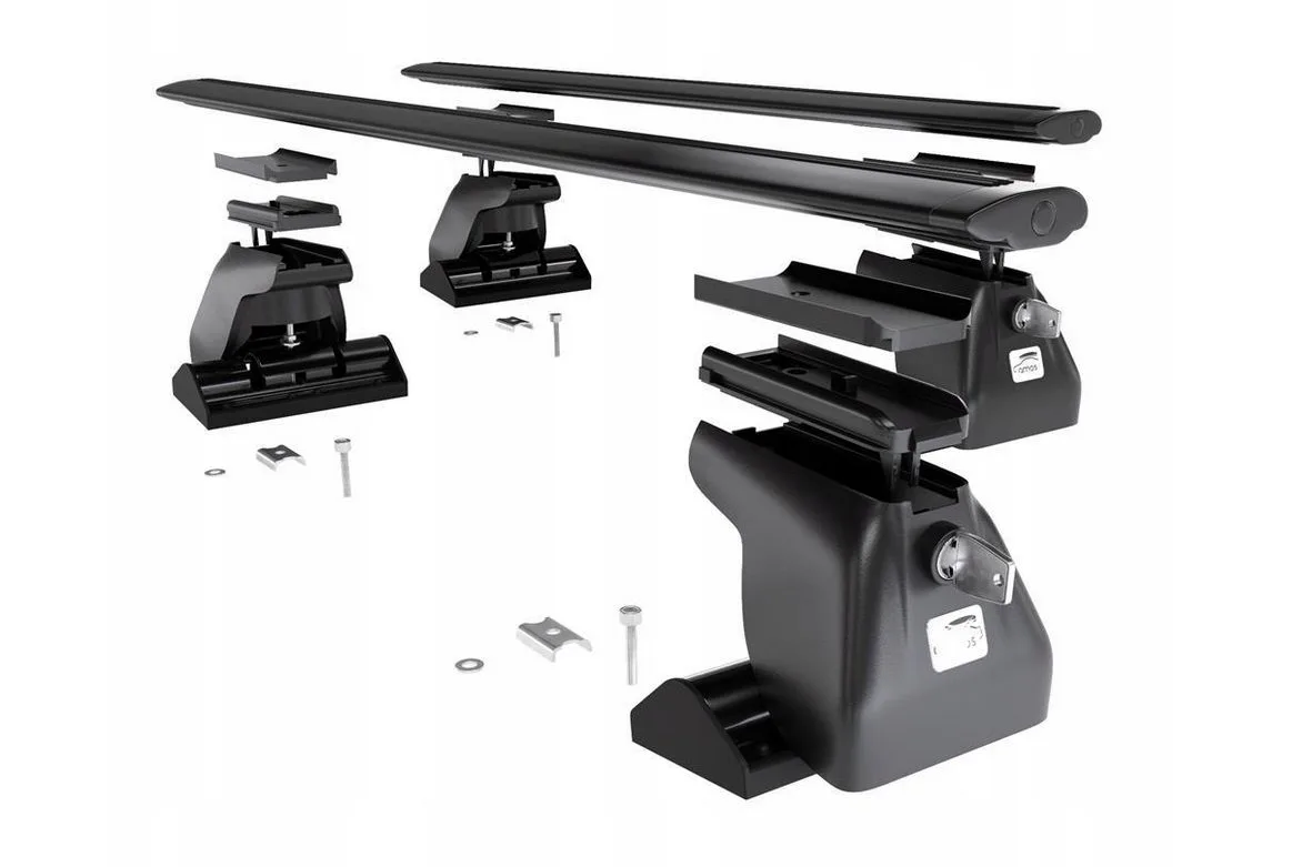 Универсальный багажник, подходящий для большинства автомобилей, в которых подготовлены для установки вертикальные заводские винты. В данной комплектации багажник оснащён укомплектован В данной комплектации багажник оснащён укомплектован алюминиевыми аэродинамическими поперечинами Aero-alfa (аналог WingBar от Thule). Стандартно комплектуются с поперечинами длиной 1,4 м c закрытием замком Plus. Грузоподъемность багажника 75 кг, если производитель не рекомендует меньше.
