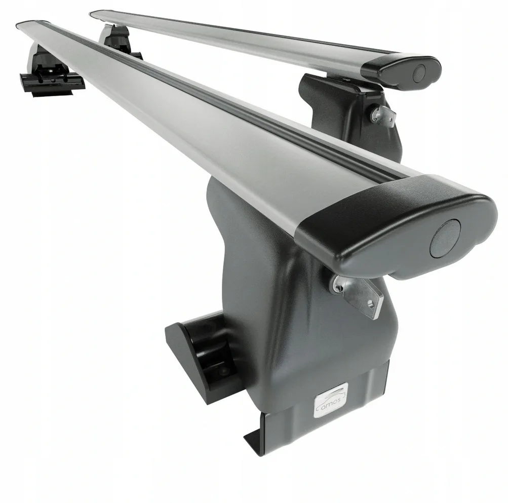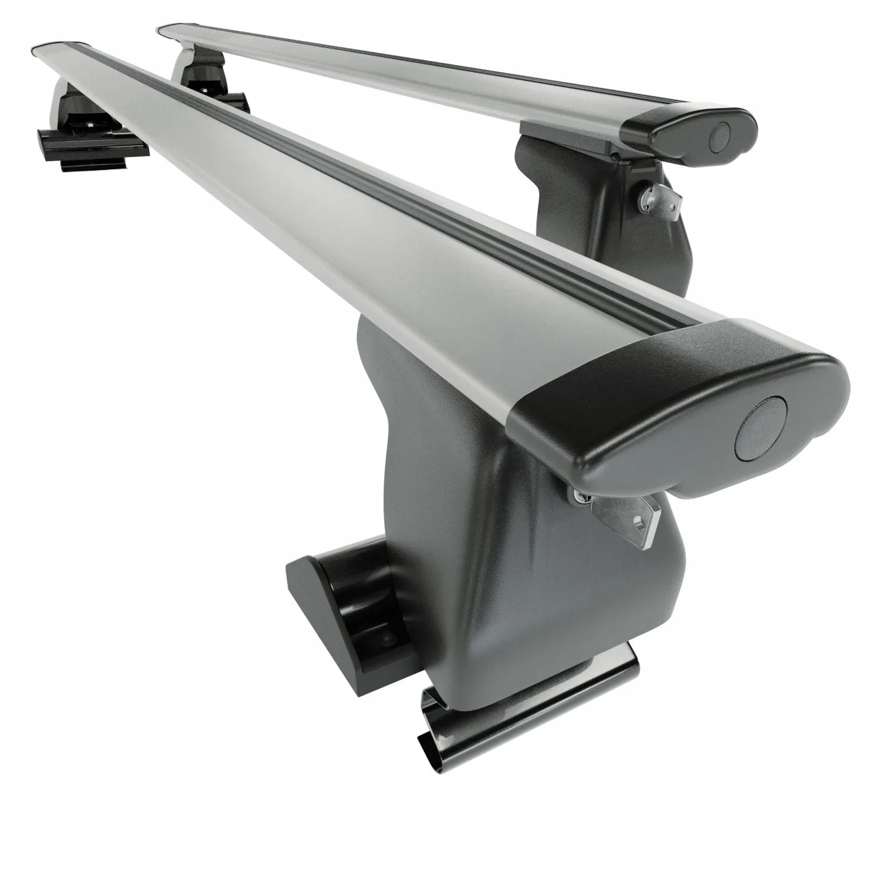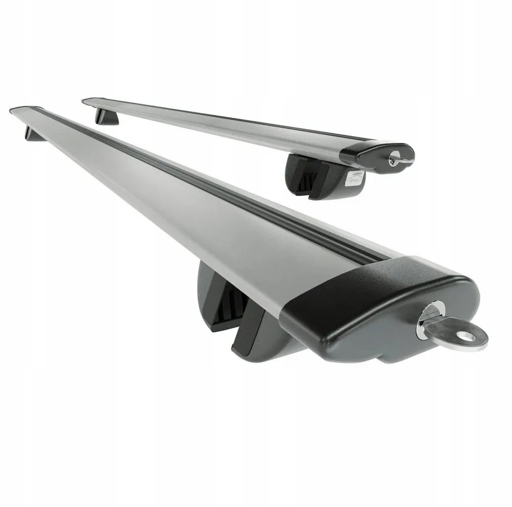 в которых при монтаже багажника используются находящийся на крыше автомобилей универсал или автофургонов т.н. Т-образный профиль. В данной комплектации багажник оснащён укомплектован В данной комплектации багажник оснащён укомплектован алюминиевыми аэродинамическими поперечинами овального сечения c закрытием замком Plus. Стандартно комплектуются с поперечинами длиной 1,3 м. Грузоподъемность багажника 75 кг, если производитель не рекомендует меньше.