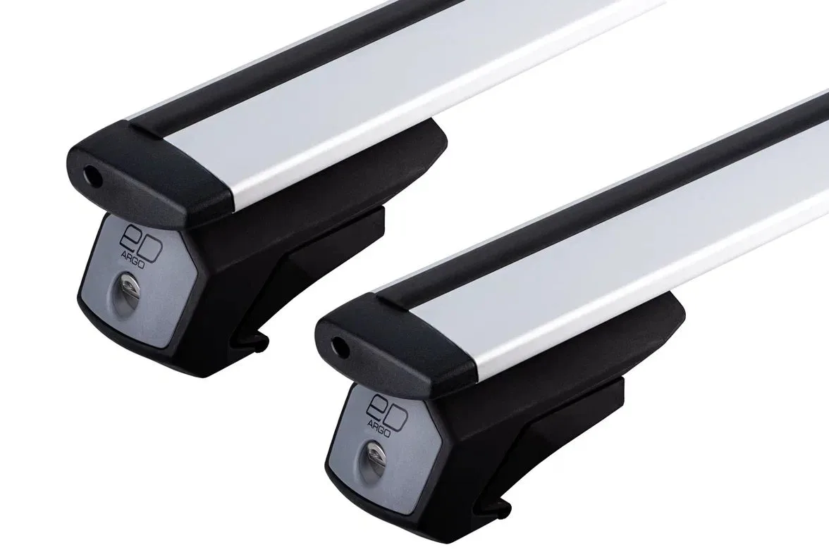 Универсальный Багажник на рейлинги Евродеталь Арго, крыловидные дуги с замком 125 см.