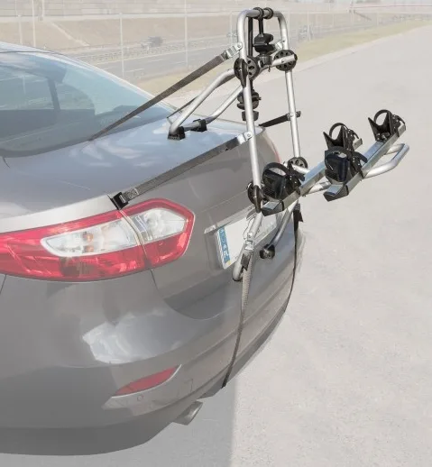 Усовершенствованный стильный багажник для перевозки велосипедов на задней крышке авто, крепится к авто при помощи 6 ремней.